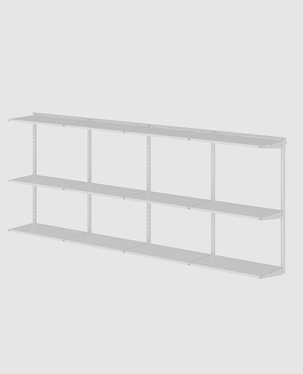 В комплект входят несущие рельсы и навесные направляющие, полки, штанги, аксессуары, крепежные элементы. Можно докупить множество дополнительных компонентов для гардеробной системы.
