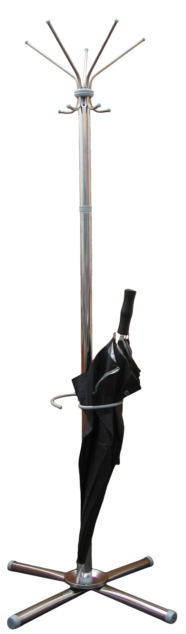 Вешалка напольная выполнена из оцинкованной стали с полимерным покрытием со вставкой из зеркальной нержавеющей стали.