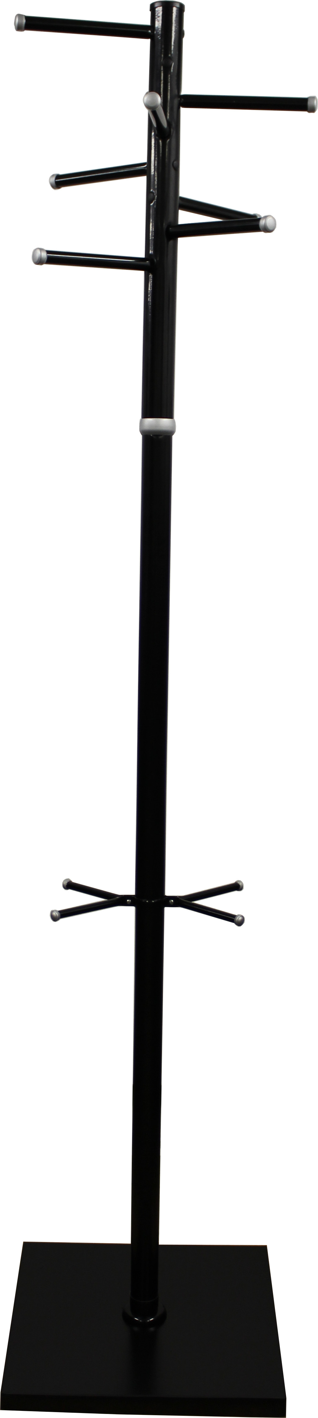 Вешалка напольная Мажор 4-З выполнена из оцинкованной стали с полимерным покрытием, утяжеленной квадратное основание.