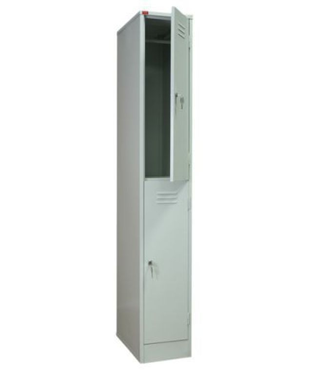Шкаф разборный металлический. Односекционый с двумя отделениями. Каждое отделение снабжено дверью с индивидуальным врезным замком.