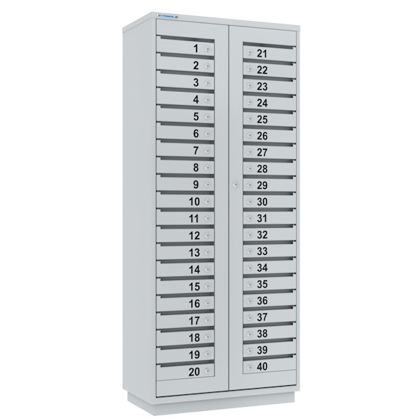 Абонентские шкафы серии Р-40 – специальная конструкция ячеистого типа, отличающаяся практичностью, функциональностью и универсальностью использования. Удобство эксплуатации и обслуживания обусловлено возможностью загрузки корреспонденции двумя способами: через общую дверцу или прорези, имеющиеся над каждой ячейкой.