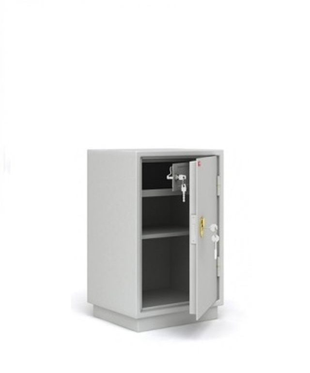 Шкаф представляет собой цельносварную металлическую конструкцию прямоугольной формы, соединение элементов которой выполнены методом сварки сплошным швом по контуру прилегания элементов. Корпус и дверь шкафа изготовлены из стального листа толщиной 1,5 мм. Дверь изнутри усилена панелью коробчатого сечения из стального листа толщиной 0,8 мм. В двери шкафа «КБС-012т» – врезной сувальдный замок. В шкафу «КБС -012т» располагается отсек ограниченного доступа (трейзер), запираемый на замок «почтового» типа и 1 съемная регулируемая по высоте полка. Петли шкафа – внутренние. Шкаф имеет подиум (подставку) высотой 47 мм для возможности размещения его вплотную к стене, а также комплектуется 4-мя роликами для удобства его перемещения. Окраска — полимерное порошковое покрытие, цвет серый.