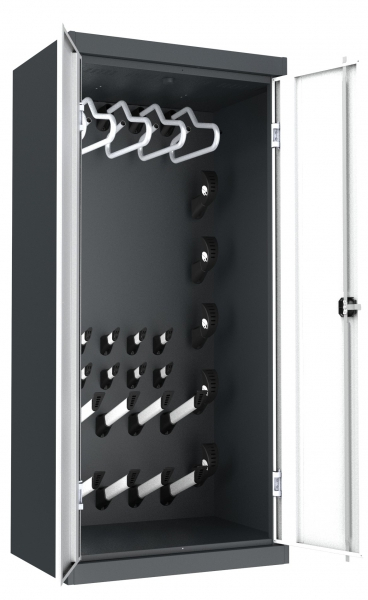 -Виды замков: кодовый замок, механический замок с ключом, электронный замок. - Пластиковые кронштейны для подвеса шлемов