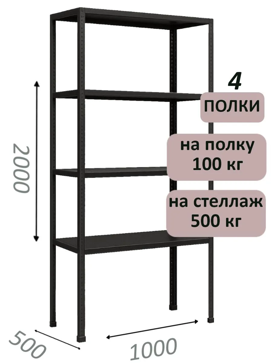 Стеллаж MS Standart 200х100х50, 4 полки, чёрный