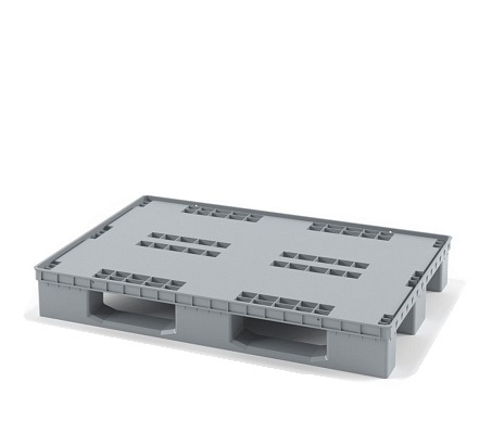 Усиленный перфорированный пластиковый поддон на трех полозьях серый 1210х810х160 (02.106.91)