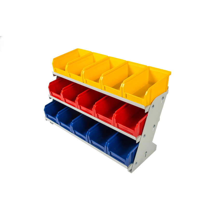 Настольный органайзер с ящиками V-1, 15 ящиков, для хранения мелких изделий Настольные органайзеры с ящиками V-1 являются отличным дополнением к рабочему месту, где необходим быстрый доступ к мелкоштучным изделиям. Они могут устанавливаться на вашем рабочем столе, тумбе, верстаке, стеллаже, торговой витрине, применяться в автосервисе и т.п. Металлическая конструкция органайзера способна выдержать ящики, полностью нагруженные металлом. Предусмотрена возможность наклона полок для большего удобства работы. В комплект входит: пластиковый ящик V-1 15 шт., настольный органайзер без ящиков V-1. Пять основных цветов ящиков: желтый, зеленый, красный, серый, синий помогут оживить ваше рабочее место, вписаться в корпоративные цвета вашей компании или просто грамотно рассортировать, хранящиеся в ящиках, изделия. При необходимости, ящики легко устанавливаются и снимаются с органайзера. Технические характеристики: тип ящиков V-1, высота 360мм., ширина 215мм., длина 530мм. Общий вес 5,2кг. Общий объем 0,03куб.м. Габариты упаковки органайзера 540х200х100мм. Габариты упаковки с ящиками 400х170х280мм. Размер ящика V-1 172х102x75мм., объем 1л. Температура эксплуатации от -20 до +70С.