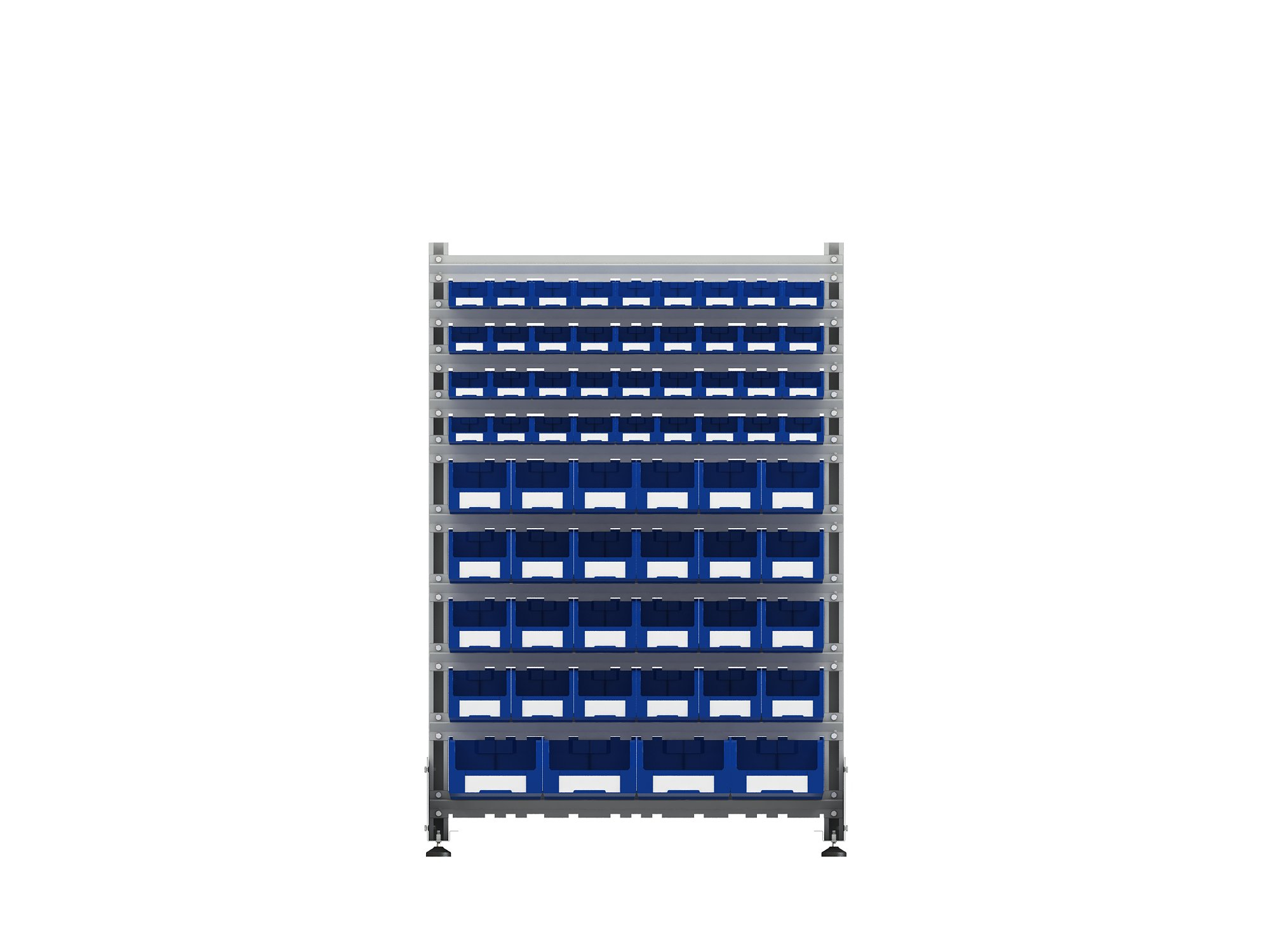 - Стеллажи могут комплектоваться лотками двух цветов: синий и красный, а также могут отгружаться и без лотков