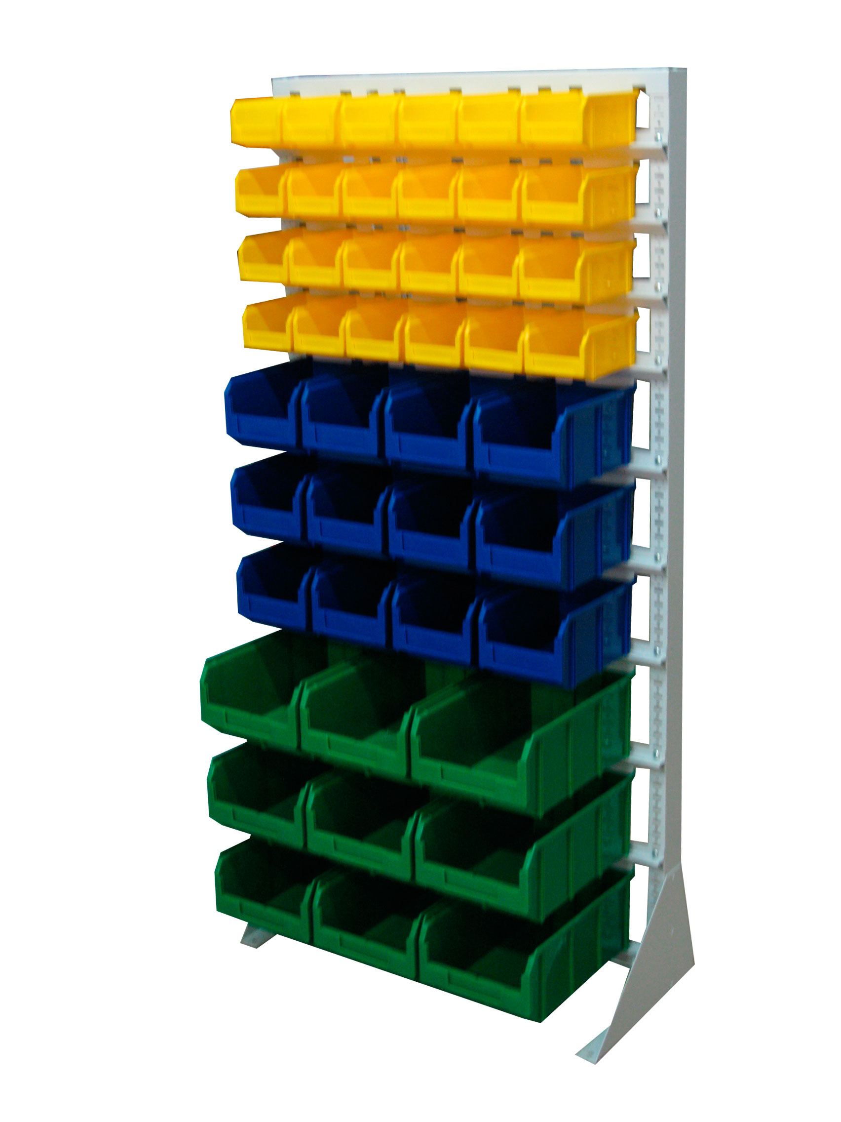 Стойка 735х1500 Стелла-техник А1-04-03-03 односторонняя служит для эффективной организации рабочего пространства склада, магазина, гаража, мастерской. Используется для систематизации и хранения мелких подручных приспособлений и инструментов. Опоры стойки 735х1500 имеют возможность крепления к полу, что обеспечивает высокую устойчивость всей конструкции. Стойка оснащена ящиками различной вместимости, в количестве 45 штук, в каждом из которых предусмотрен специальный кармашек для опознавательной карточки - это позволяет эффективно систематизировать помещенные туда инструменты и приспособления. Сборка данной конструкции не требует от пользователя каких-либо специальных знаний и умений. Стойка не займет много места в авто-слесарной мастерской, на складе или в торговом помещении. Данная модель оснащена тремя типами ящиков открытого типа различной вместимости. Комплектация:• Стойка под пластиковые ящики 735х1500мм. без опоры, серия К; Опора стойки односторонняя комплект (правая + левая + крепеж) серия К; Держатель для стойки 735мм., серый, распределенная нагрузка до 40кг. на ряд, серия К - 10 шт.; Пластиковый ящик серии V-1, размер 172х102х75мм. - 24 шт.; Пластиковый ящик серии V-2, размер 234х149х120мм. - 12 шт.; Пластиковый ящик серии V-3, размер 341х207х143мм. - 9 шт.; Упаковка. Преимущества: Хороший визуальный обзор содержимого. Каждый ящик оснащен специальным кармашком, позволяющим вставить этикетку для индикации содержимого. Конструкция стойки позволяет легко извлекать нужный ящик и так же легко устанавливать его на место. Быстрая сборка. Высокая прочность. Габариты: 735х330х1500мм., вес 28,2 кг.