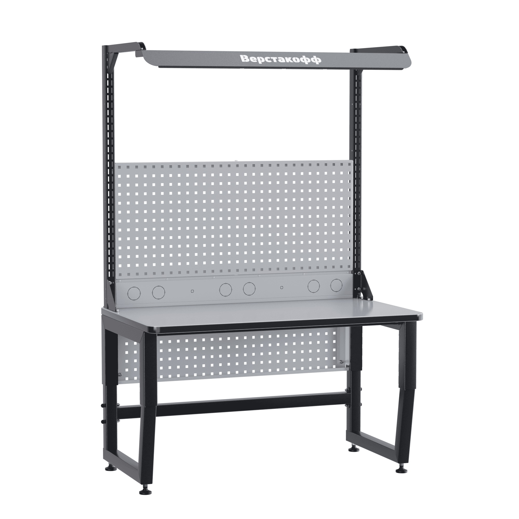 Для наилучшей освещенности при работе с мелкими электронными компонентами рабочее место комплектуется блоком освещения. В его составе - специальный промышленный светильник с необходимой цветовой температурой и световым потоком, обеспечивающим оптимальные условия работы. Блок освещения располагается над рабочей поверхностью на регулируемых (по высоте и по вылету) кронштейнах