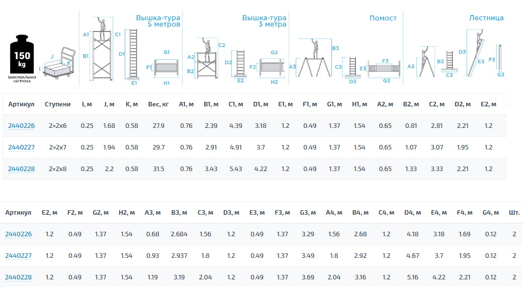 Вышка-тура многофункциональная шарнирная с рабочей высотой до 5 м NV2440.7
