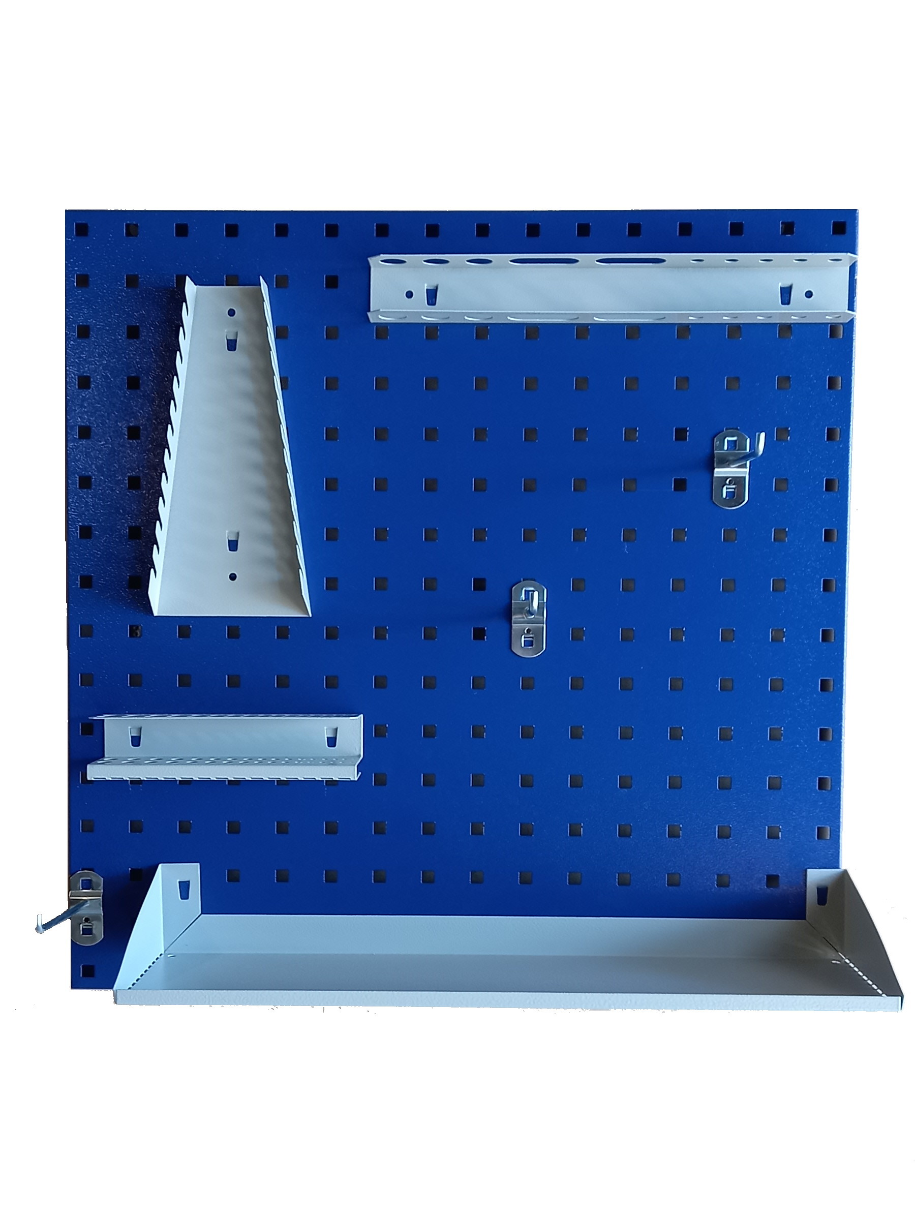 Настенный набор для хранения инструмента на перфорированных панелях.