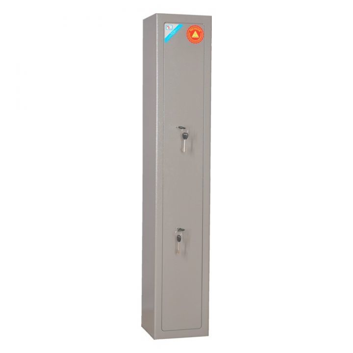 Сейф на 2 ружья оснащен отделением под патроны. Ложементы — металлические держатели с резиновыми роликами. Максимальная высота устанавливаемого оружия — 1200 мм. Два замка ЗАО «Про-Сам» г. Рязань или аналогичные замки другого производителя.