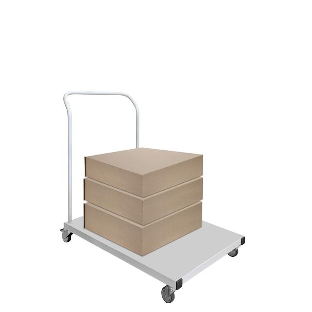 Все элементы окрашены эпоксидно-порошковым покрытием RAL 7035, а так же представлены дополнительно в двух цветах на выбор. Распределенная нагрузка на тележку до 120 кг.
