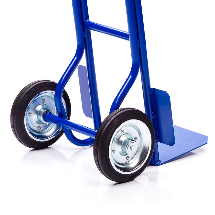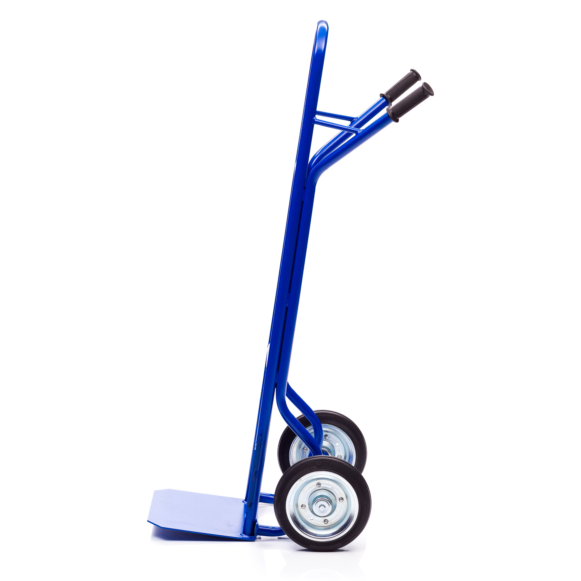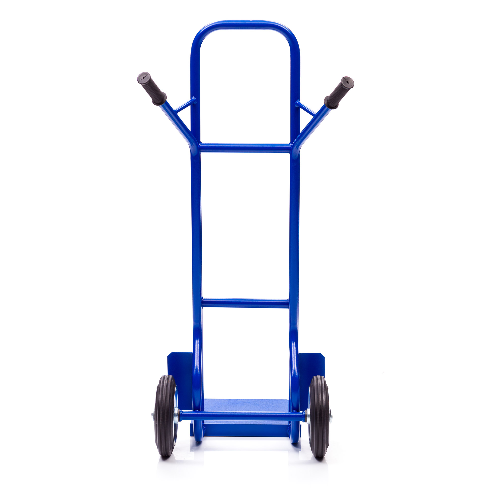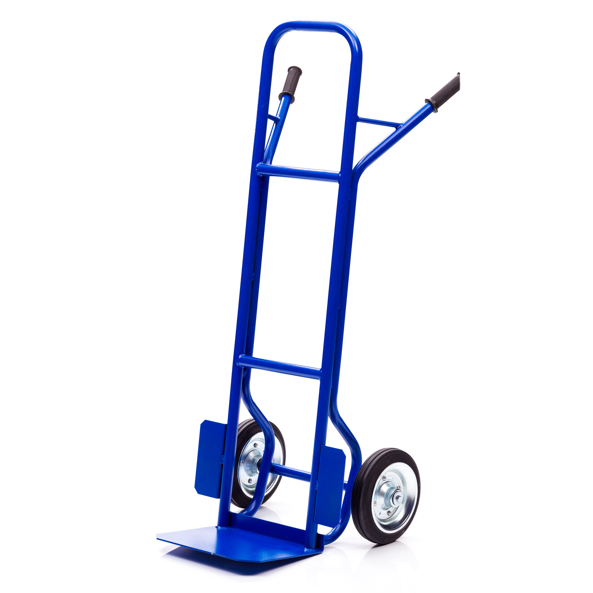 Грузовая 2-х колесная тележка КГ-250 предназначена для перевозки грузов весом до 250кг. Надежная металлическая, цельносварная конструкция тележки изготовлена из трубы круглого сечения. Диаметр трубы 30мм., толщина металла 1,5мм. Ручки выполнены из трубы диаметром 28мм., толщиной 1,5мм. и оснащены резиновыми наконечниками для удобной работы в складских помещениях, на производстве, а также в бытовых целях. Грузовая площадка размером 350х250мм. обеспечивает устойчивое и надежное положение груза при транспортировке. Площадка выполнена из листа металла толщиной 4мм., что позволяет перевозить грузы весом до 250кг. При помощи удобных ручек можно легко изменять направление движения грузовой 2-х колесной тележки КГ–250 при перевозке груза. Покрытие полимерное. Цвет синий, шагрень. Основные преимущества Тележки КГ-250: прочная металлическая конструкция, грузоподъемность до 250кг., небольшой вес, малые габариты, удобные прорезиненные ручки, устойчивость и маневренность выгодно отличают её от других аналогов.