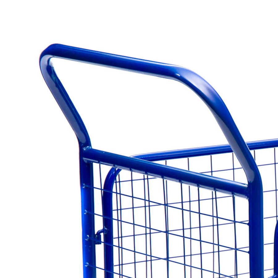 Платформенная 4-х колесная тележка с сетчатыми бортами КПО-300С используется для транспортировки различных сборных грузов на оптовых базах и складах. Размер платформы 600х1000мм., металлический борт-сетка защищает груз от падения и ударов, что позволяет перевозить хрупкие предметы и сборные грузы. Металлическая сетка с ячейками 50х50мм., Ручки и борта тележки снимается для удобства транспортировки и компактного хранения. Высота боковых сетчатых бортов 480мм., высота борта от платформы 500мм., высота ручки 750мм. Платформа имеет уникальную рельефную противоскользящую поверхность. Покрытие полимерное. Цвет синий, шагрень. Для легкого перемещения тележка КПО-300С комплектуется 2 поворотными и 2 неповоротными колесами, изготовленными из высококачественной литой резины.
