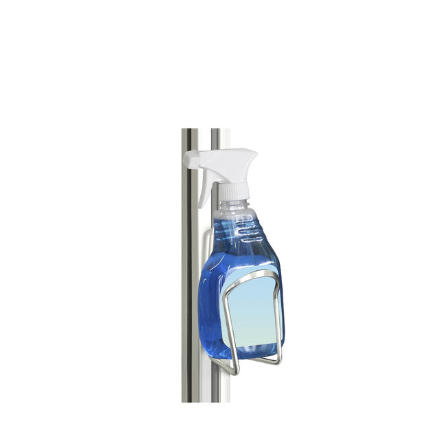Конструкция держателя предусматривает захват емкостей, во избежание их опрокидывания и обеспечивает фиксацию в вертикальном положении. С помощью болта и монтажного отверстия в держателе, его можно расположить в любом удобном месте в изделиях изготовленных из конструкционного профиля.