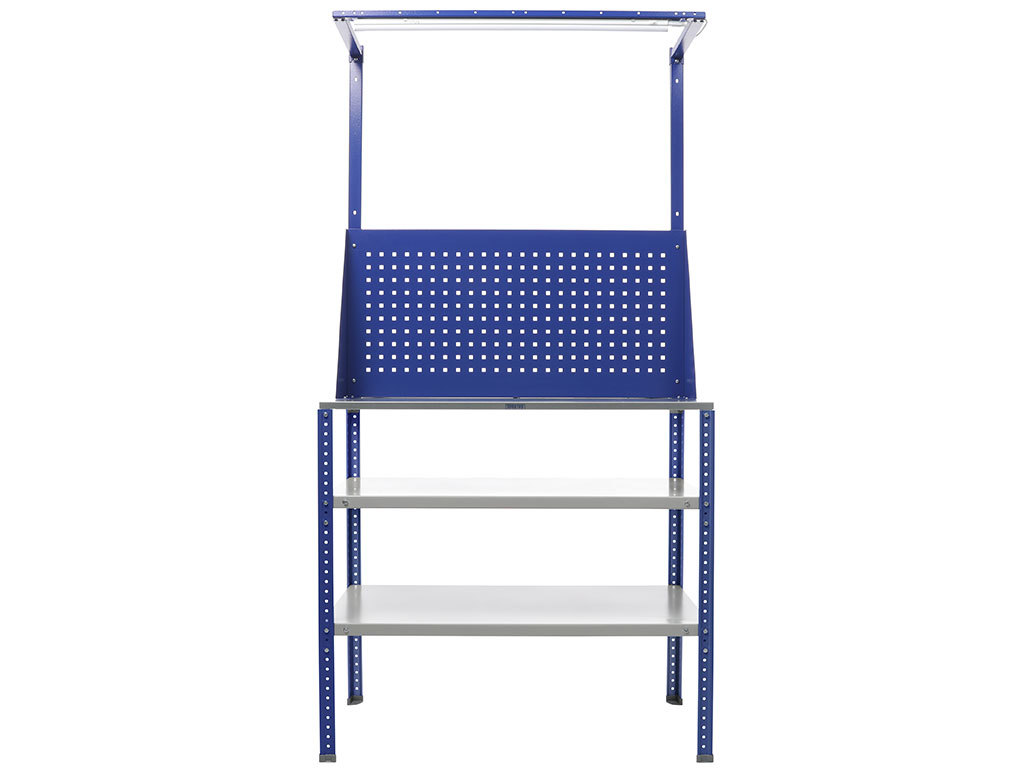 - комлект верстака оснащен двумя полками с нагрузкой (100 кг), экраном и комлектом освещения