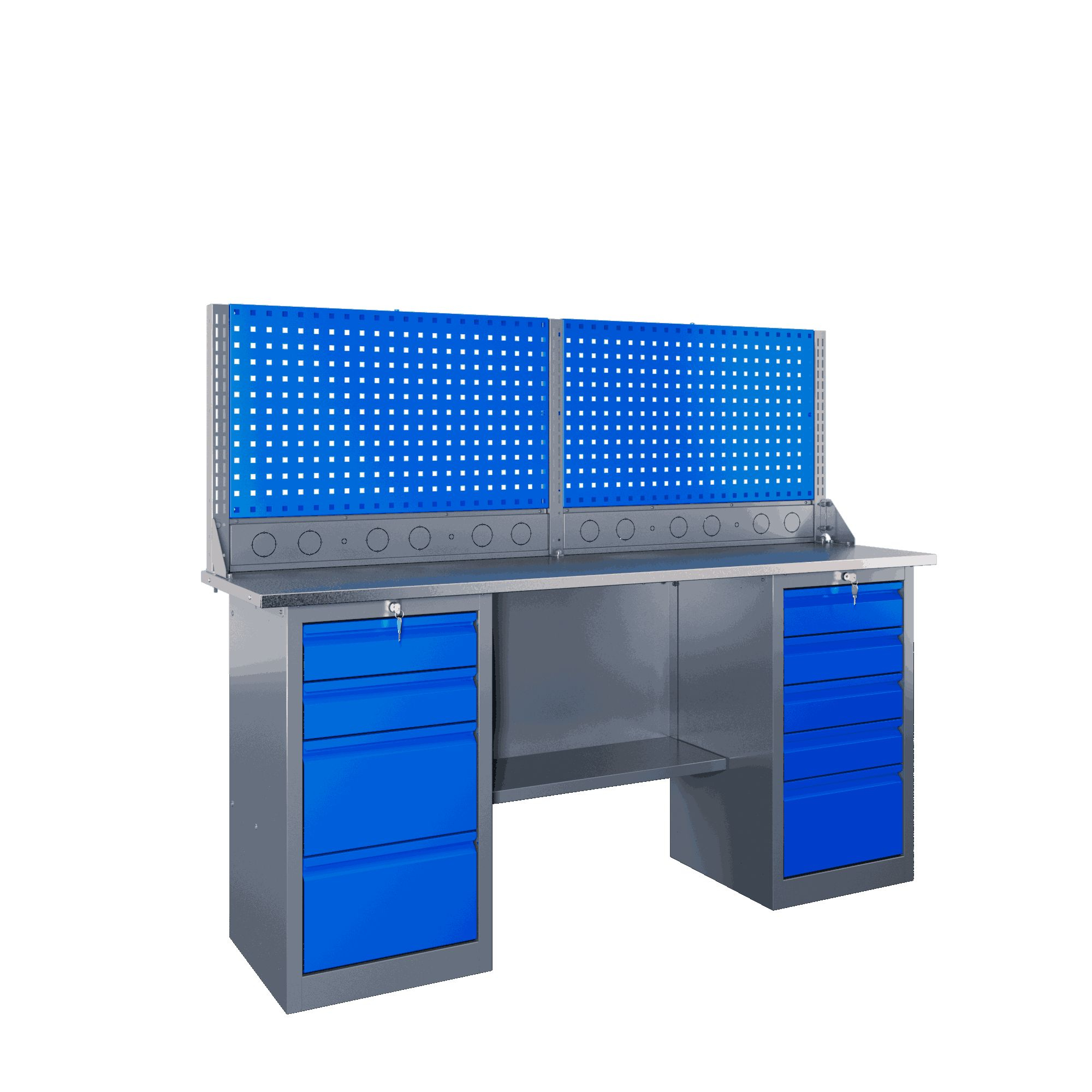 Самые компактные верстаки с глубиной столешницы 500 мм. Благодаря небольшой глубине, такие верстаки легко размещаются в ограниченных пространствах, например, в гаражах, мастерских и тд. Несмотря на компактные размеры, верстаки могут быть оснащены полками, ящиками и держателями для инструментов, что помогает поддерживать порядок и быстро находить нужные предметы.