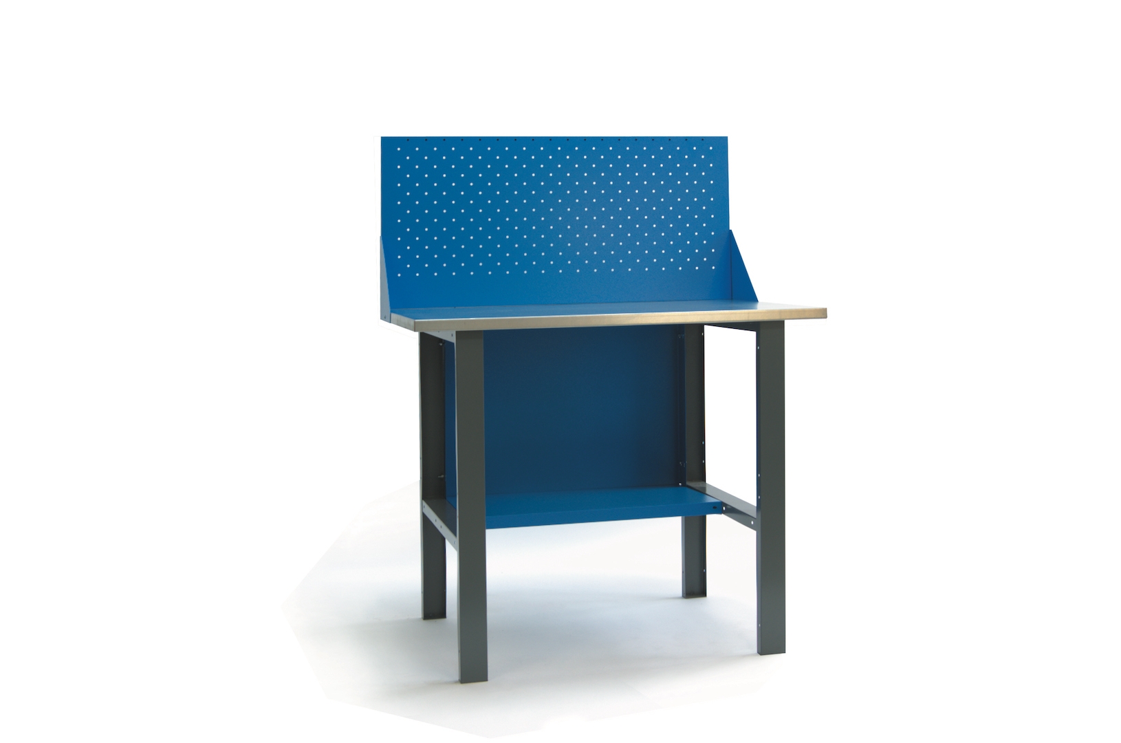 - Верстак имеет надежную модульную конструкцию с усиленной столешницей (плита МДФ 25мм, покрытая листом оцинкованного металла).