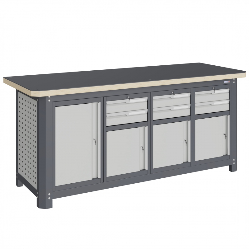 Модуль верстака выполнен сварными. Ящики в модулях устанавливаются на шариковых телескопических направляющих полного выдвижения.