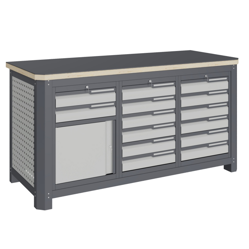 Модуль верстака выполнен сварными. Ящики в модулях устанавливаются на шариковых телескопических направляющих полного выдвижения.
