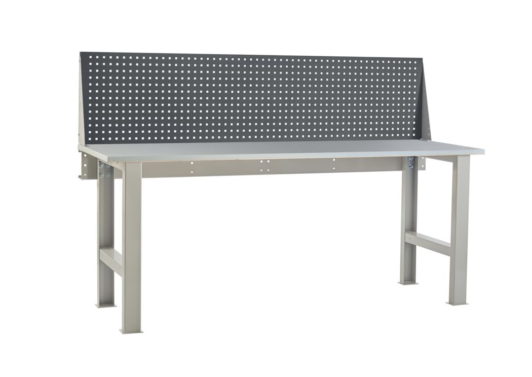 Этот небольшой верстак представляет собой надежную и простую модель металлической мебели, идеально подходящей для оборудования небольшого гаража или же мастерской. Сборная конструкция позволяет без труда транспортировать это изделие. Верстак оснащен большой столешницей и перфорированным экраном, на котором при помощи зацепов могут размещаться дополнительные аксессуары в виде держателя для отверток, ключей и навесных полок.