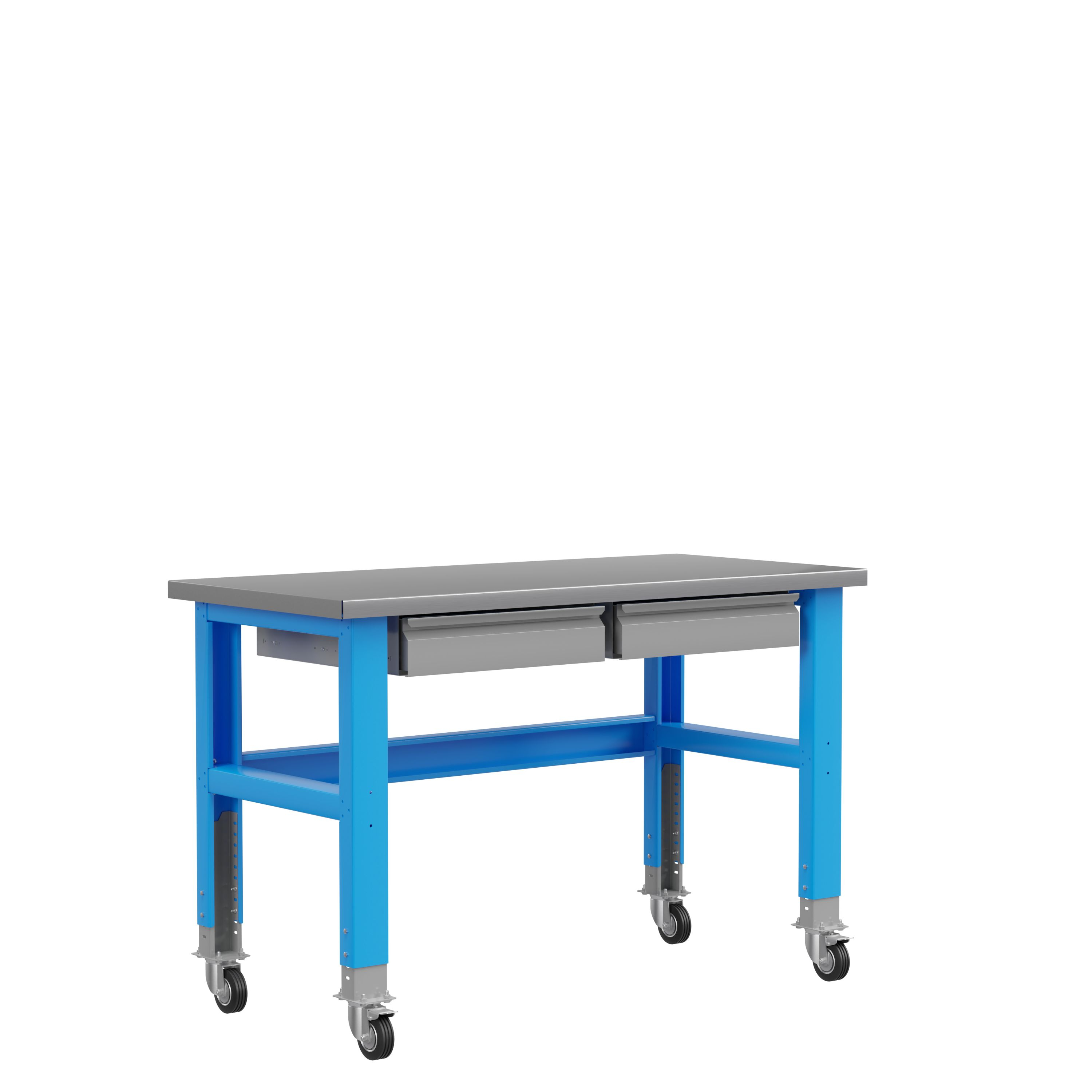Конструкция опор позволяет производить регулировку по высоте от 800 до 1000 мм, что позволяет использовать подкатные инструментальные тележки «Верстакофф» серии 795.